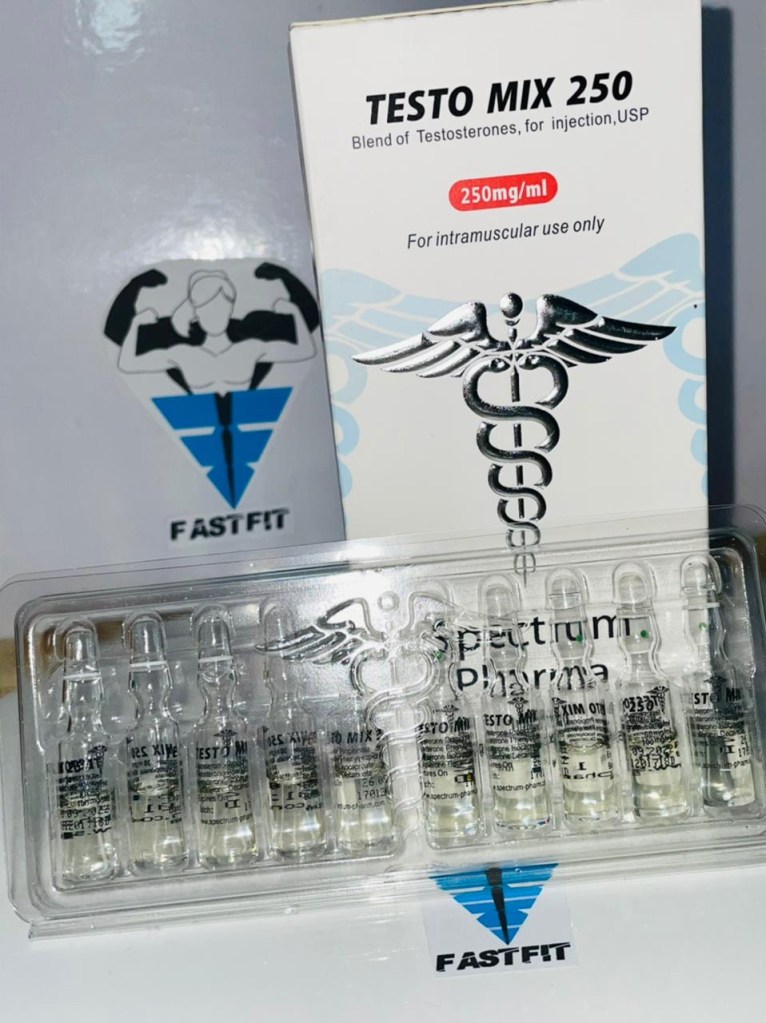 Propionato de testosterona / testosterona fenilpropionato / testosterona isocaproato / decanoato de testosterona (TP / TPP / TiC / TD), vendido bajo la marca Testo Mix 250 (Spectrum Pharma) entre otros, es un medicamento de combinación inyectable de cuatro ésteres de testosterona, todos los cuales son andrógenos / esteroides anabólicos.