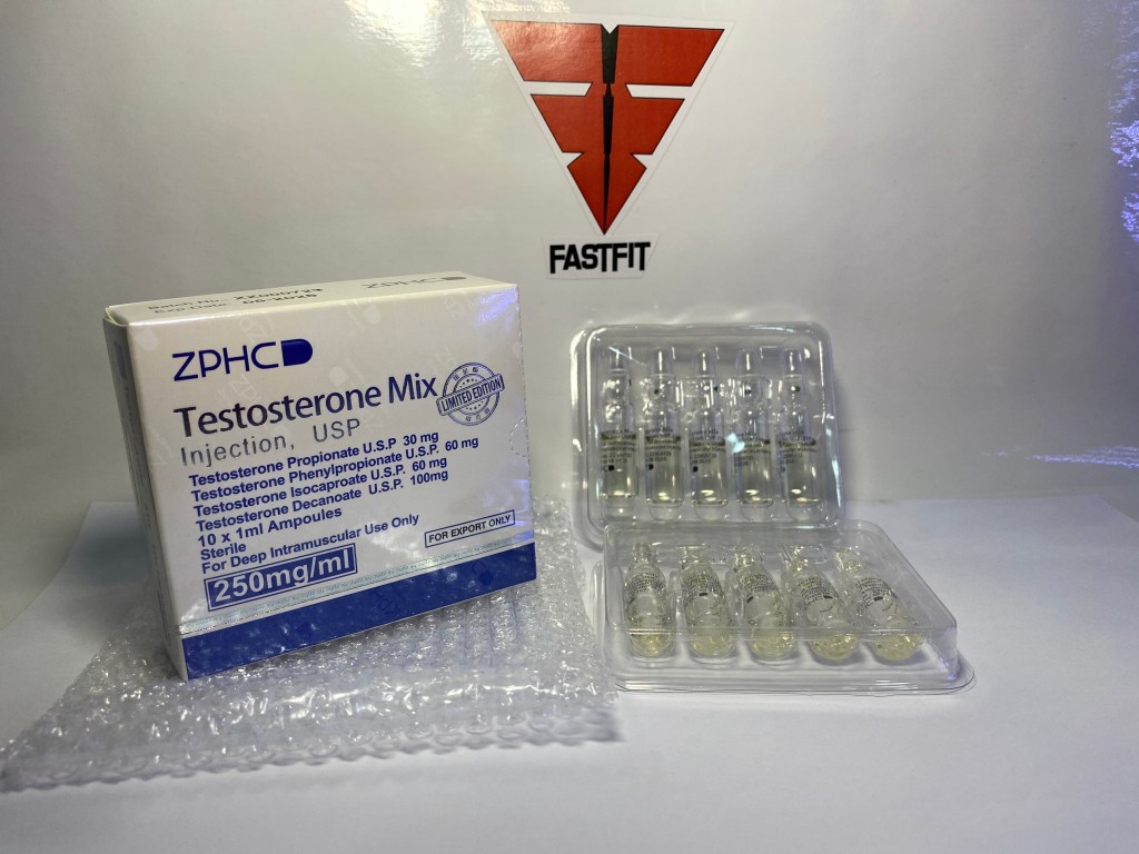 Este producto de mezcla de testosterona fabricado por ZPHC se vende en ampollas de 1 ml. El ingrediente activo utilizado es la mezcla de 4 tipos diferentes de testosterona sintética: propionato, decanoato, isocapproato, fenilpropionato. Su concentración es de 250 mg/ml. Cada envase contiene 10 ampollas.